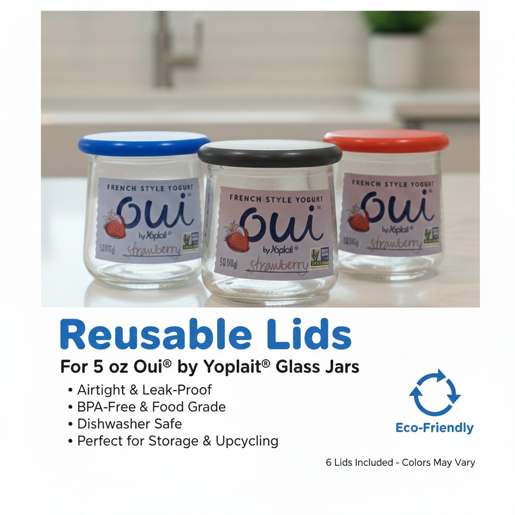 6-Pack Reusable Lids for Oui 5 oz. Yogurt Glass Jars | Storage Upcycling